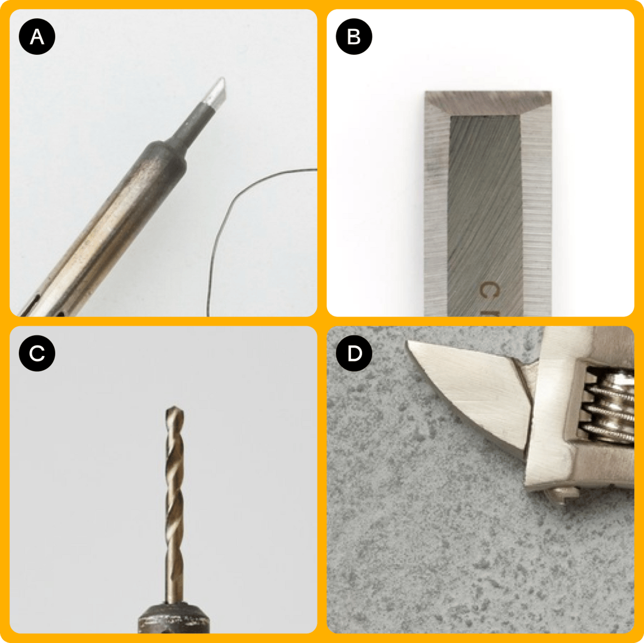 Here’s a zoomed-in image of 3 everyday engineering tools or gadgets.
