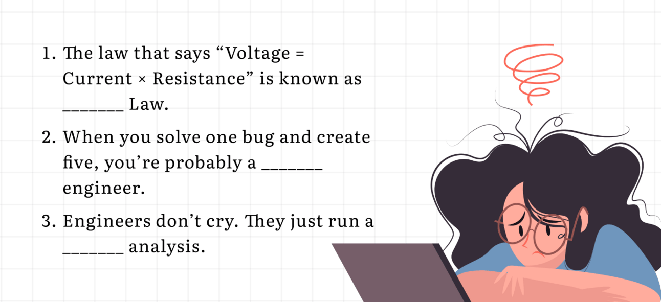 Let’s separate the true engineers from the Google-tabbers. Fill in the blanks: