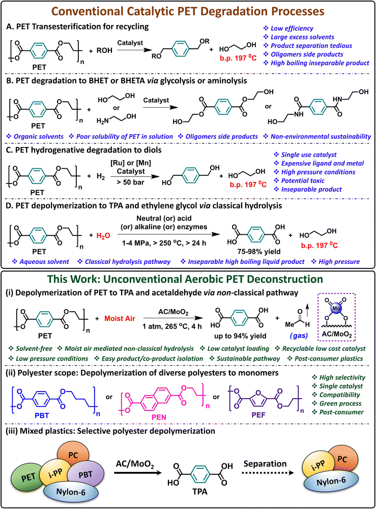 1. Breaking it Down: PET is mixed with the molybdenum catalyst and activated carbon, then briefly heated. This combination quickly breaks apart PET’s tough chemical bonds.