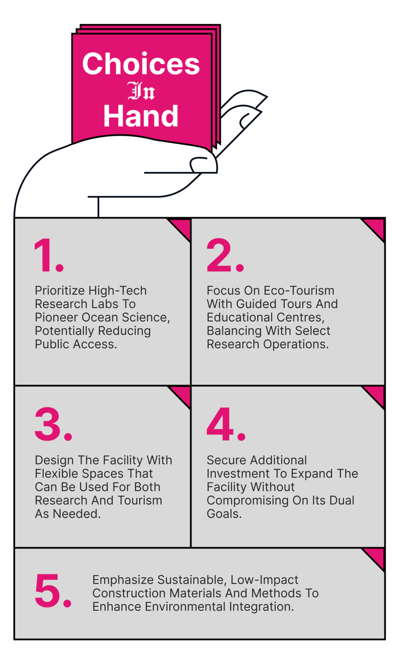 ⦁ Eco-Priority: Environmental impact is a major concern; the structure must integrate with the local ecosystem without disrupting it.