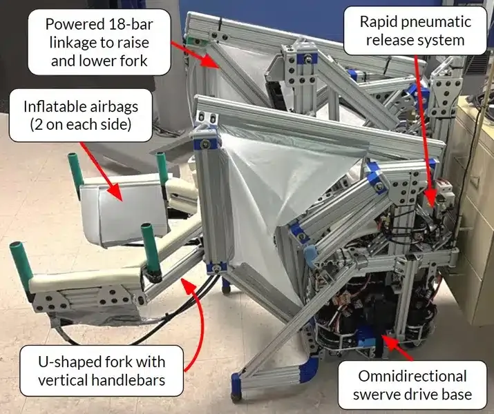 The current prototype is operated via remote control, but future versions will autonomously follow and assist the user. The team is also working on slimming down the device to make it more maneuverable in tight spaces.