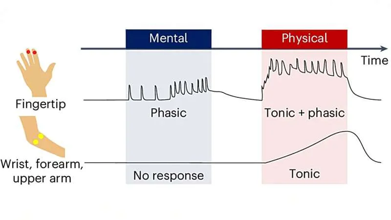 Scientists have used EDA for decades to measure psychological stress (like in lie detector tests), but nobody thought it could track physical activity or hydration. Turns out they were wrong.
